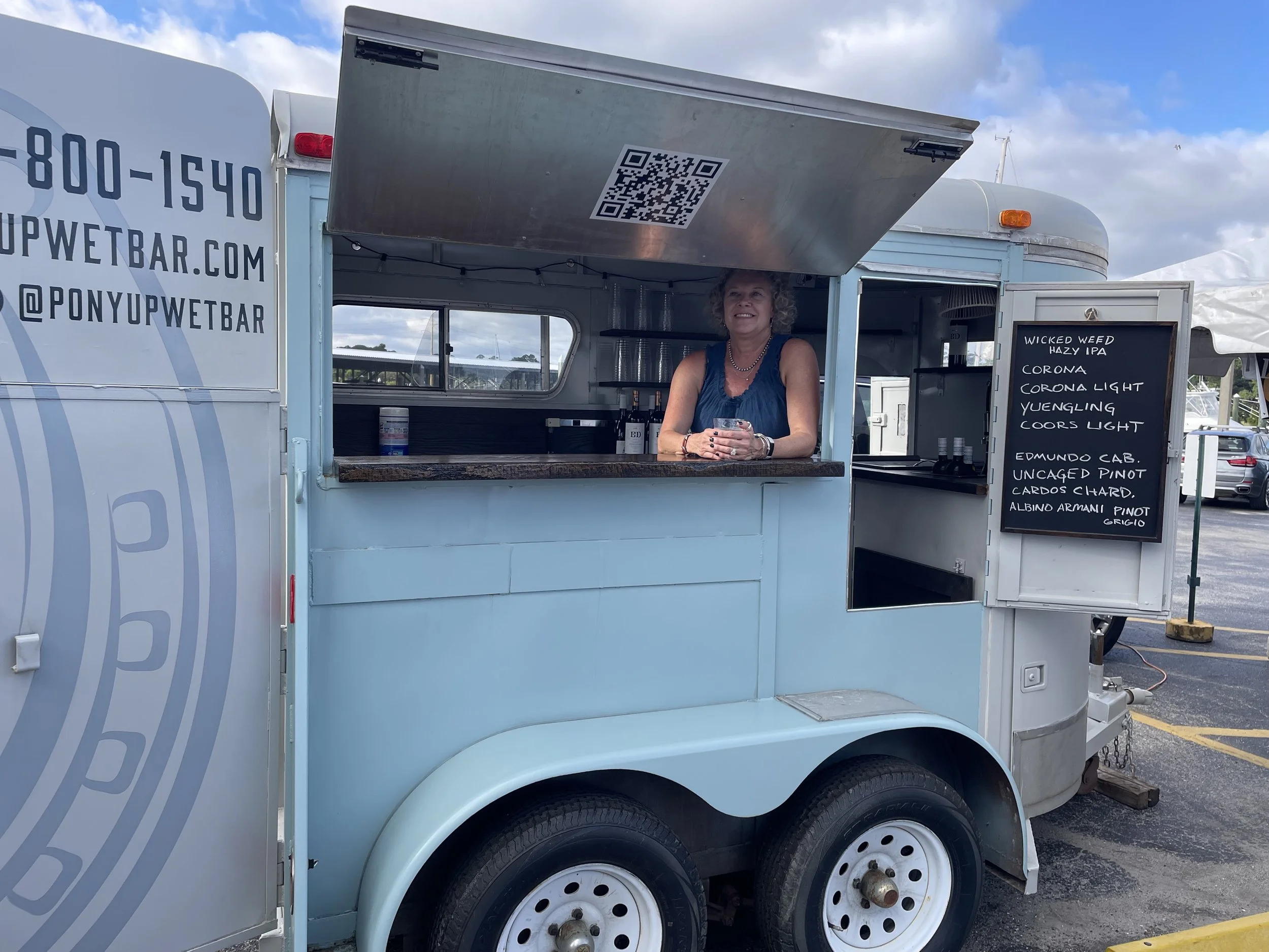 We show up with a refurbished and modified Horse Trailer to serve drinks at your event. Meet with you well in advance of your event & determine what beverages you are going to serve. From there, we figure out how much you should purchase.